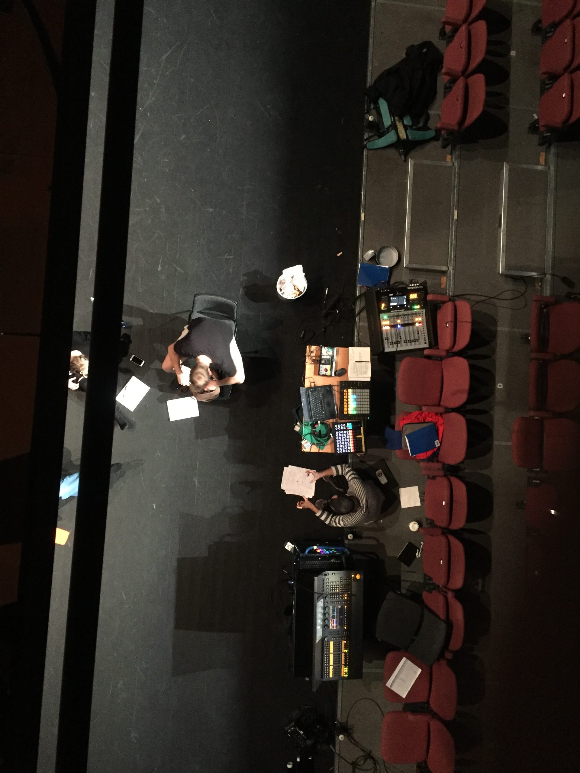 Opotfotf combined Musical and Soap Opera Elements in absurd and dadaistic ways. In terms of sound it was my attempt to captivate the spectators and create illusion of being in classical musical stuations just to subsequently deconstruct and disrupt them, over and over again. My Live Set was mainly focused on live processing voices to embed them in the music, put them into virtual spaces and setting bizarre accents through effects and automations. So it was possible to fit the singing perfectly to the songs, change moods within seconds and create acoustic illusions.